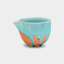 空と海を思わせる釉薬が、緋色の地に輝く「片口」の単品。