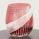 幸運の白蛇が木々に巻き付いている様子を表現したマルチグラスです。あえて磨き切らずに薄っすらと曇りガラスのような状態を残し、質感を本物の白蛇に近づけました。菊つなぎなどを全面にカットを施したラグジュアリーな作品です。