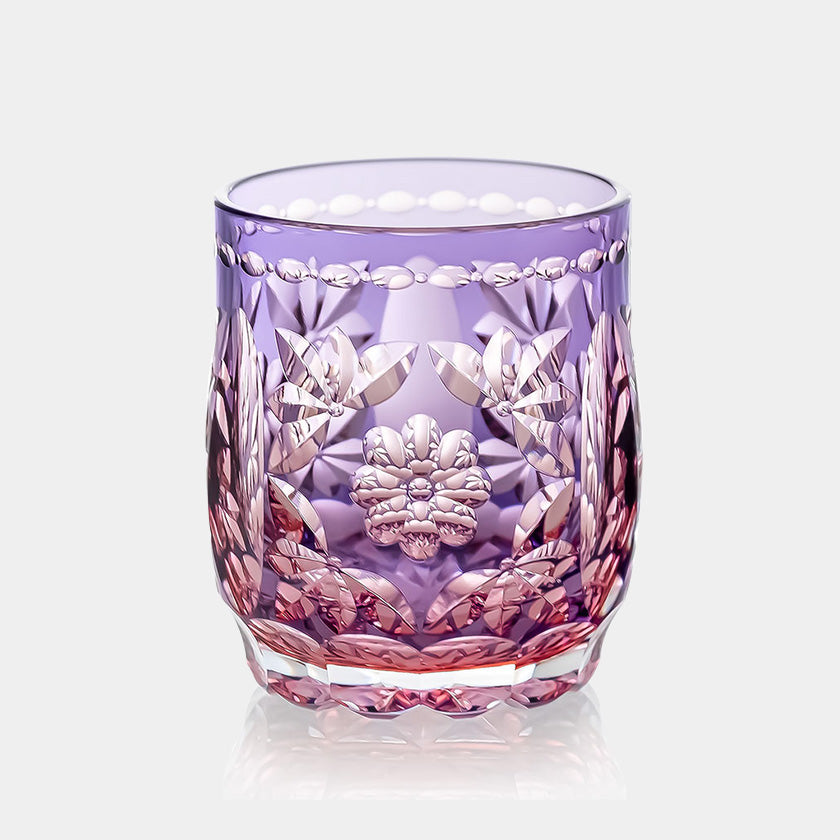 The glass is carefully carved with flower cuts, which emerge softly in the right light.