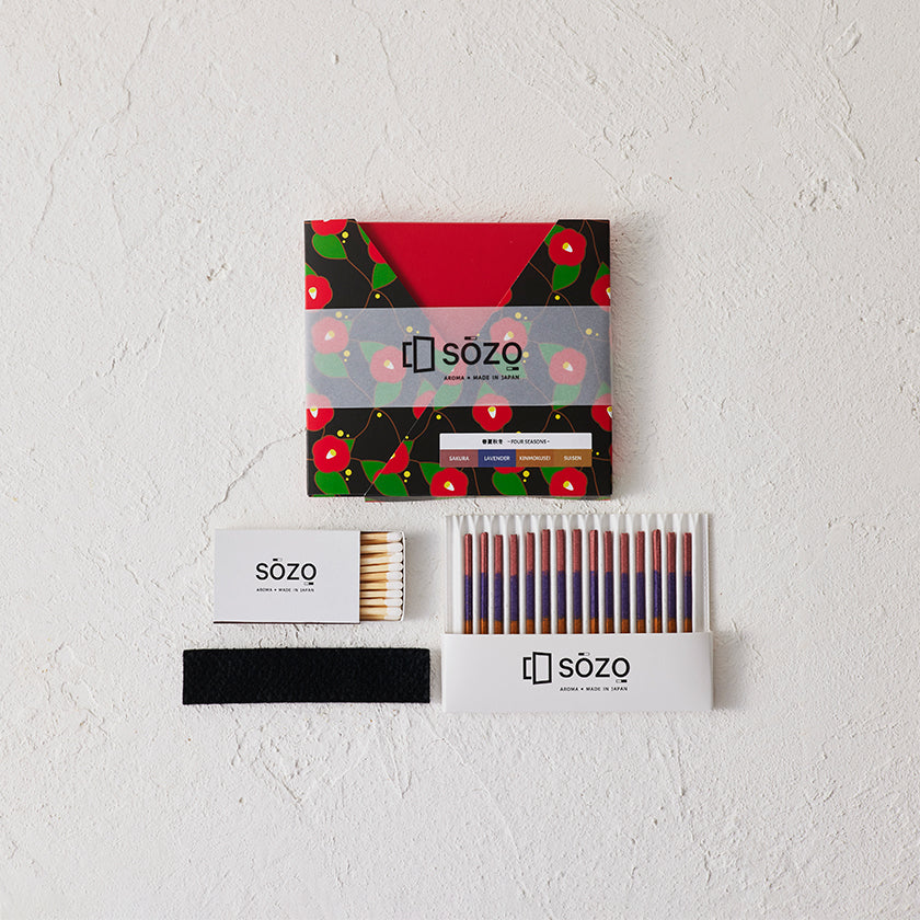 Cherry blossoms in spring, lavender in summer, osmanthus in autumn, and daffodils in winter-the scents inspired by the changing nature of Awaji Island evolve sequentially within a single stick.